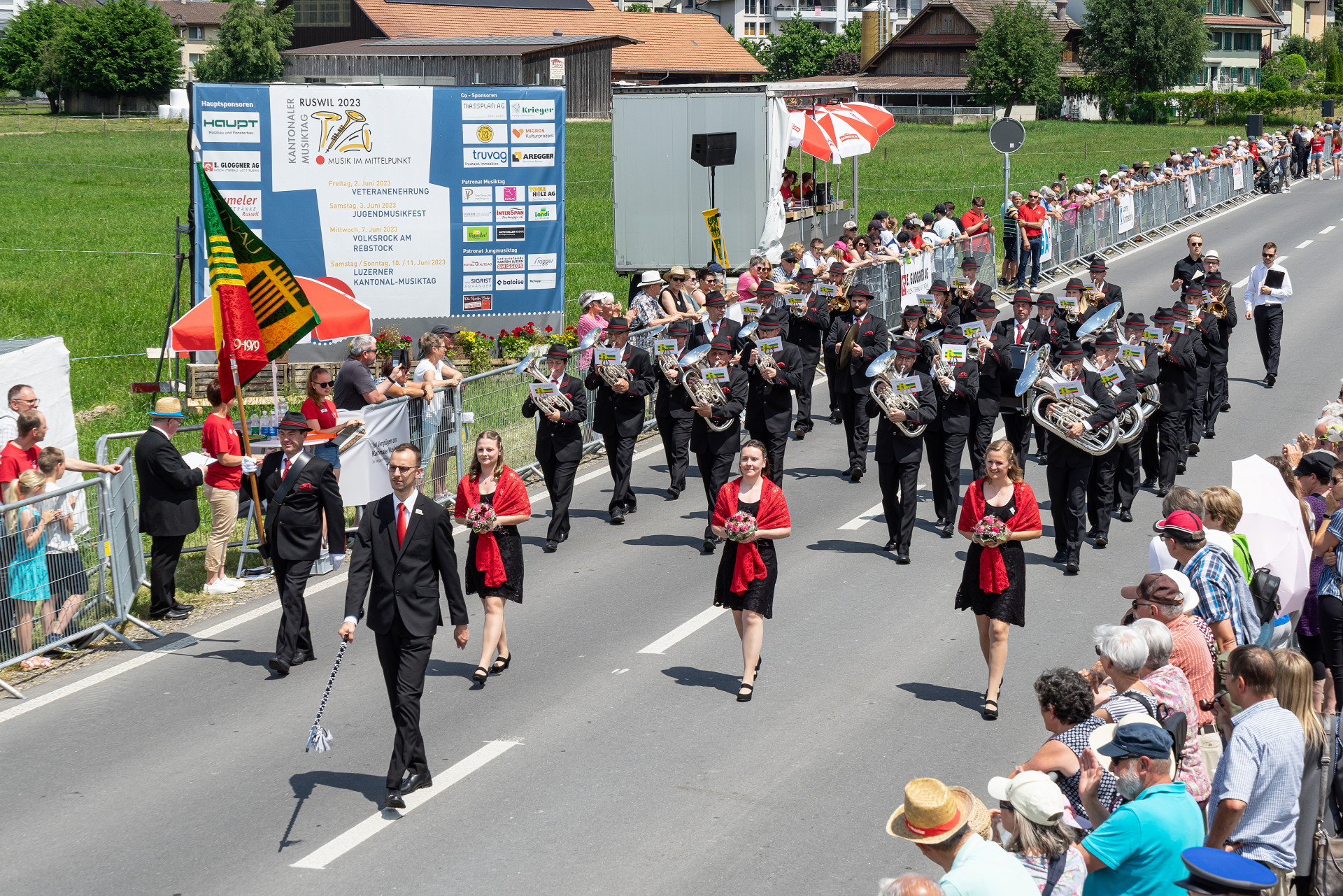 Am Luzerner Kantonal Musiktag Samstag 10. Juni 2023 total 34 Vereine von insgesamt 59 Teilnehmer anwesend. Publikumsmagnet waren die Parademusik und die ausgezeichneten Vorträge in der Sporthalle Wolfsmatt. Rund 10’000 Leute waren am Samstag in Ruswil zu Gast. Tausende säumten die Parademusikstrecke und im Konzertlokal waren bis zu 1’200 Leute anwesend. Am Abend stieg auf dem Festareal eine grosse Party und die Leute feierten bis um 3.00 Uhr morgens.